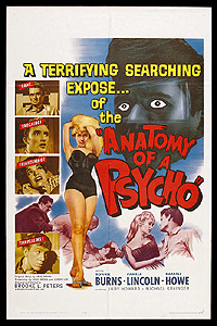 When I hear a title like Anatomy of a Psycho, I envision something along the lines of Henry: Portrait of a Serial Killer. And even once I learned of this movie’s release date, my expectations changed only in so far as scaling back the amount and intensity of the gore that I imagined would be displayed. The truth is, though, that Anatomy of a Psycho is something else entirely; the truth is that Anatomy of a Psycho lies through its teeth. For despite having been promoted as the horror movie it sounds like not only by its original producers, but by a succession of subsequent distributors as well (once even turning up on the same DVD as A Hatchet for the Honeymoon, for the love of God), it is instead an appallingly dull juvenile delinquent film in the style of the mid 1950’s. Indeed, it’s the sort of movie I ordinarily wouldn’t review at all, but given both that it has the weight of more than 40 years’ worth of dishonest marketing behind it and that it is nearly as abysmal a waste of 75 minutes as anything you’re likely to run across, I feel it is my solemn duty to warn the world… Our so-called psycho is one Chet Marco (Darrell Howe), brother of convicted murderer Duke Marco. We are introduced to Chet just hours before his brother’s date with the gas chamber is due to begin, and he is not in the best of moods. Chet believes that Duke was framed; he finds it incredible that the young man who raised him and his sister, Pat (The Tingler’s Pamela Lincoln), after their parents died could also have been the thieving, murdering thug the jury saw him as. And after Duke goes to his death that midnight, Chet vows revenge upon everyone who had anything to do with sending him there. The judge, the prosecutor, the jurors— everybody. All of which makes it more than a little inconvenient that Pat’s new boyfriend, Mickey (Ronnie Burns, adopted son of George and Gracie), happens also to be the son of the key witness in Duke’s trial (Russ Bender, from The Satan Bug and Space Probe Taurus). The two surviving Marco siblings know nothing of this as of yet, but give them time. With Mickey’s conscience bugging him the way it is, the story is sure to come out sooner or later. In the meantime, Chet has other targets— although, oddly enough, they’re not quite the targets he swore vengeance against. For example, rather than going after the district attorney, he and his gang of 30-year-old “juvenile” delinquents don masks and ambush the DA’s equally craggy “teenage” son, beating him senseless in his own front yard after school one afternoon. Given the Marco family’s reputation in town, it’s hardly surprising that Chet and his boys are the first people the cops think of as suspects in the case, and a detective lieutenant (Creature with the Atom Brain’s Michael Granger) pays a visit to them at the shack owned by Moe (Blood of Dracula’s Don Devlin), one of the members of the gang. The lieutenant arrives just in time to witness a scene that will have grave repercussions down the road. For reasons that are difficult to fathom, Mickey has also dropped in to see Marco, inviting him— but not his cronies— to a party he and Pat are going to at the home of another boy named Arthur Brennan (Pat McMahon). When the cop walks in, Mickey and Moe were about to get into a fight, and he overhears the two boys make threatening comments to each other as Mickey leaves. The informal interrogation scene which ensues between the detective and Chet’s gang was already leathery with age 20 years before Anatomy of a Psycho was filmed. Chet ends up going to Arthur Brennan’s party, but not for any of the reasons Mickey and Pat might think. Arthur’s father, you see, was the district court judge who presided over Duke’s trial, and Chet figures the party presents the perfect opportunity for exacting revenge. And just to make Chet’s grudge that much more insistent, it also turns out that Arthur is the “classy” boy for whom Marco’s skank girlfriend, Sandy (Judy Howard, from The Ghost of Dragstrip Hollow) had just dumped him. Consequently, Chet makes a point of sabotaging the nascent romance by letting Arthur catch him and Sandy together in a compromising position before surreptitiously setting the Brennans’ house on fire. It appears that no one is seriously hurt in the conflagration, but the house burns to the ground before the firemen are able to get the blaze under control. Chet’s presence at the fateful party inevitably means that detective will want to talk to him again. He also wants to talk to Bobbie (Frank Kiliman), the youngest and presumably most impressionable member of Marco’s gang, on the theory that Bobbie might be levered into squealing on Chet provided the prospect of continuing to cover for him were made to sound sufficiently hazardous. Bobbie’s more loyal than the detective gives him credit for, however, and he gets nothing out of the boy— at least for now. Meanwhile, we in the audience are still waiting for anything to happen which might justify the title in some meaningful sense. The closest we’ll ever get to that comes when Mickey finally decides to come forward to Pat and Chet about his father’s role in Duke’s trial. Pat takes it surprisingly well (which is not to say that Pamela Lincoln acts it particularly well…), but Chet’s reaction isn’t surprising at all. When Mickey stops by Moe’s shack a second time to tell Marco that he is the son of the key witness against Duke, Chet lunges at him with a knife. Now Moe certainly has no love for Mickey, but he draws the line at a stabbing in his living room, and he enters the fray intent on getting the knife away from his friend. But in the confusion of the scuffle, Moe ends up with the knife in his gut instead of Mickey, who flees the shack in horror when he sees just how far wrong the situation has gone. As Moe lies dying, Chet has a brainstorm. The detective saw Moe and Mickey gearing up for a fight