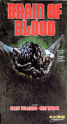 Traditionally, when Hollywood enters into collaboration with production companies from other lands, considerable effort is expended to disguise the foreign origins of the resulting films. Witness, for example, all those American guest stars imported to play the leads in the movies Toho produced in conjunction with Henry G. Saperstein or Rankin-Bass. But in the case of Brain of Blood, the only one of Hemisphere Pictures’ drive-in-era horror films to be shot in the United States by an American director, the usual practice was stood on its head. Hemisphere had been doing well for itself ever since the 1964 reissue of Terror Is a Man, and by the middle of 1971, it had all the movies under production that its studio infrastructure could comfortably handle. The company’s American partners at Independent-International were of the opinion that the market could absorb even more Hemisphere product, however, and after a bit of discussion, Eddie Romero and Sam Sherman, the respective head honchos at Hemisphere and I-I, settled upon an unusual experiment to meet the perceived demand. Sherman would turn loose Al Adamson to make a picture which could be passed off as a Filipino import, even though no one involved in its creation would ever set foot outside the Los Angeles hinterland during the course of production. Even the title— Brain of Blood— would toe the established Eddie Romero line. I’ve heard stranger ideas in my time, but not very many. Abdul Amir (Reed Hadley), beloved ruler of the imaginary Middle Eastern nation of Kahlid, is dying of cancer, but as yet, only his most intimate circle of advisors has any inkling of that fact. It is the considered opinion of all concerned that if word got out that the amir was really lying at death’s door, and not taking a holiday in seclusion from the pressures of rule, the people of Kahlid would so rapidly lose faith in their government that virtually all of the progress the country has made during Abdul’s reign would be undone immediately. There might seem to be nothing for it, but the amir’s personal physician, the half-British Robert Nigserian (Grant Williams, of The Incredible Shrinking Man and The Leech Woman), thinks he knows of a way out of Kahlid’s bind. A mostly discredited colleague of his by the name of Lloyd Trenton (Kent Taylor, from Brides of Blood and Blood of Ghastly Horror) claims to have perfected a technique for the transplantation of the human brain, and Abdul’s number-one secret agent (Regina Carrol, of Angels’ Wild Women and Satan’s Sadists) has known Trenton for long enough that she believes he knows what he’s talking about, even if the rest of the world medical establishment considers him a crank and a crackpot. If the amir will allow it, Nigserian wants to fly his body to the United States the moment he dies; it should be possible to make the trip to Trenton’s lab in just enough time for the renegade doctor to install Abdul’s brain in a new body before the fifteen-hour window of opportunity identified by Trenton closes. Abdul’s aide, Mohammed (Zandor Vorkov, from Dracula vs. Frankenstein), may not like the idea much, but the amir goes for it, and even Mohammed is willing to concede that Nigserian’s plan seems to offer the only real hope for the country’s future. You might think it would bother Nigserian a bit to discover that Trenton has no host body on hand when he, Mohammed, and the dead amir arrive at the lab. However, Trenton assures his visitors both that a body will be coming along very shortly, and that recent advances in his research have obviated the need for an immediate transplant. All Trenton, Nigserian, and Trenton’s assistant, Dorro (Angelo Rossitto, from The Corpse Vanishes and Mesa of Lost Women), will need to do before the fifteen hours are up is pop the amir’s brain out of his skull and transfer it to the special life-support machine which Trenton has developed specifically for that purpose. (Incidentally, it occurs to me that a man who is too short even to see the top of the operating table is exactly what every doctor wants in a surgical assistant…) What Trenton is taking pains to avoid saying, of course, is that the reason he has no body ready is that his transplant technique requires a host body so fresh that it must be killed more or less immediately before the operation. Even now, his other assistant, Gor (what do you know— it’s John Bloom, from The Dark and The Incredible 2-Headed Transplant, playing yet another gigantic, disfigured retard!), is prowling the city in pursuit of a burglar with approximately the amir’s build and facial physiognomy. As soon as Gor has “recruited” the unfortunate body-donor, the second phase of the operation can begin. Something very strange happens while Mohammed and Nigserian are on the way to the hotel where they will await news of the second surgery, though. A shaggy-haired man (Richard Smedley, from The Abductors and Naughty Stewardesses) in a colossally befinned Cadillac chases them down and runs them off the road. Only Nigserian himself survives the automotive assassination. As soon as possible, he gets in touch with Secret Agent Tracy, who flies out to the US to help him get to the bottom of it all. Nigserian’s best guess is that somebody wants to make sure the amir remains peacefully dead— either that, or someone is after Dr. Trenton for one reason or another. But if you’re asking me, I think there’s much more going on here than either Tracy or the doctor suspect. After all, it must surely be significant that the assassin is later blown up in his car (or a car, anyway— the exploding Caddy is not the same one we see the man climb into an instant before) by Dorro mere moments after escaping capture by Nigserian. Meanwhile, back at the lab, there has been an unforeseen complication. Gor did such a thorough job of killing the burglar that his body is now entirely useless for the operation. Nigserian will be coming
